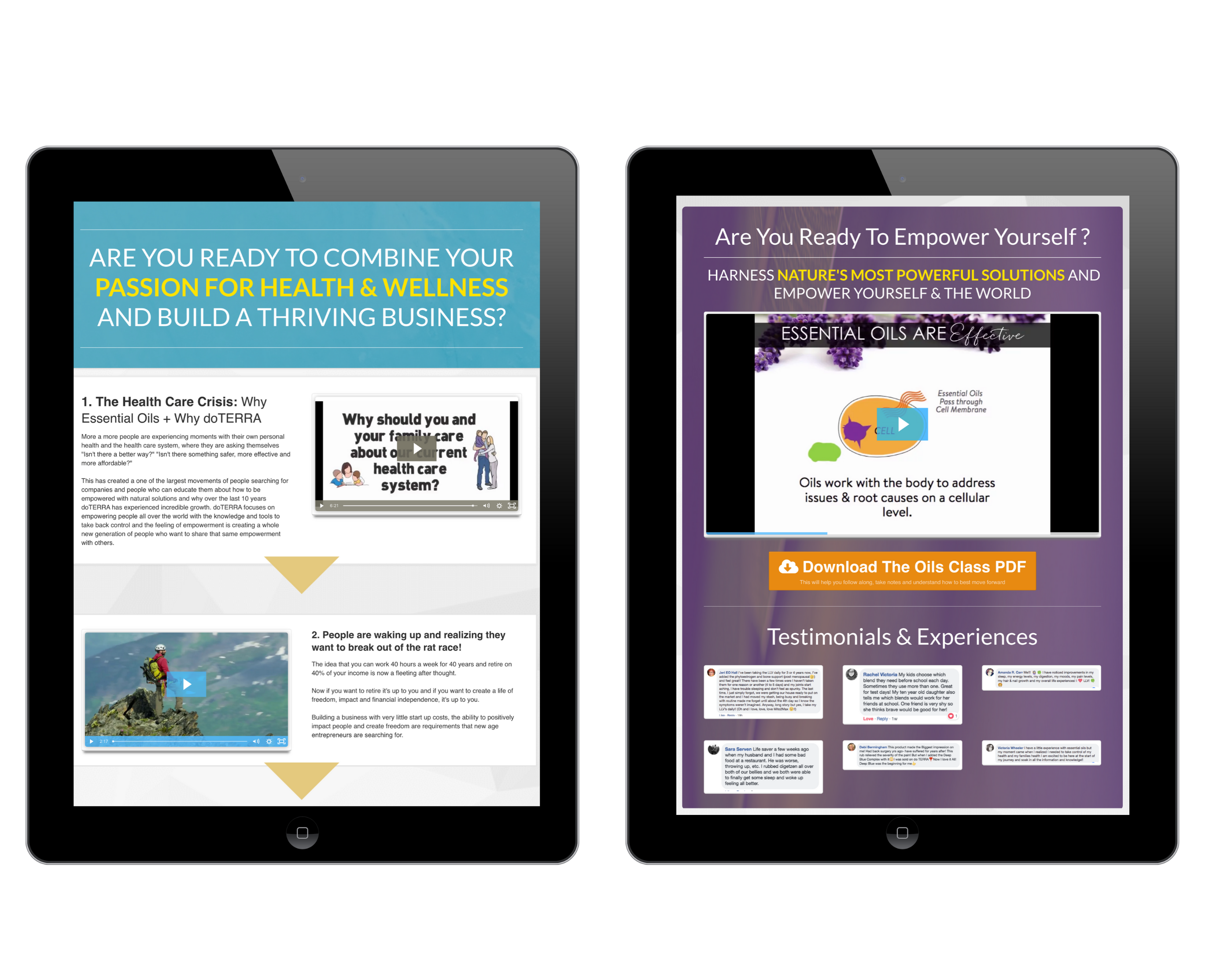 Product and business funnels to attract new customers and business partners who want essential oils and want to be on your team which means you aren't chasing people that aren't interested and you are building a community of customers and business partners who share your vision.